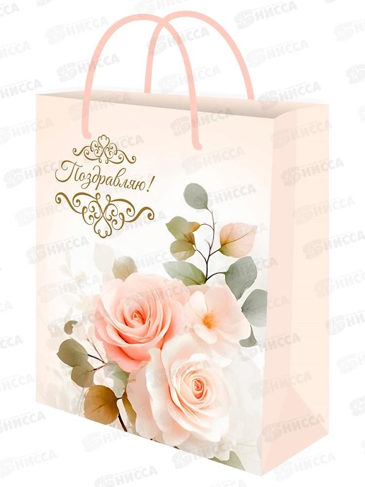 Пакет подарочный MI 26,4х32,7х8см Нежные розы, ППК-7827 *12
