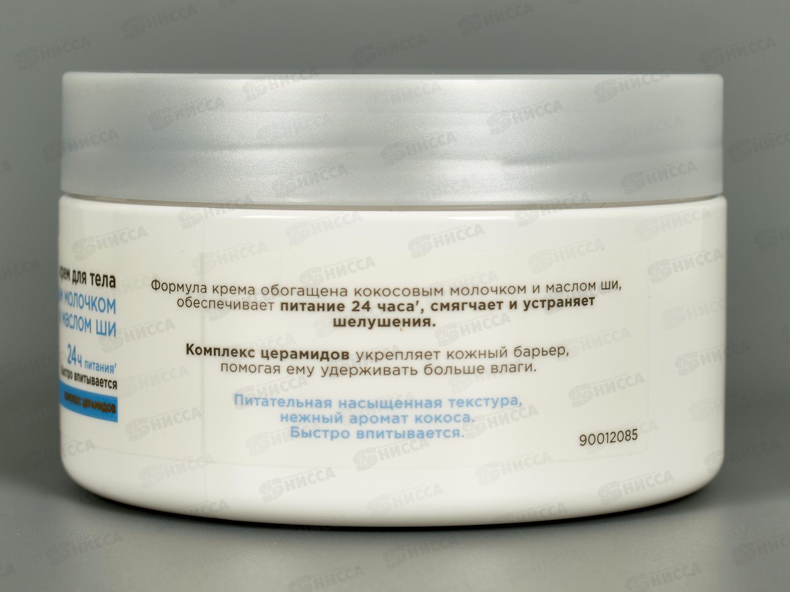 Состав: вода, цетеариловый спирт, глицерин, этилгексилстеарат, глицерилстеарат цитрат, изопропилмиристат, диметикон, жидкое парафиновое масло, каприловый/каприновый триглицерид, масло ши (Butyrospermum parkii), экстракт масла ши (Butyrospermum parkii), кокосовое масло (Cocos nucifera), церамид AP, церамид AS, церамид NG, церамид NP, аллантоин, изоалкан C13–14, цетеарет?20, глицин, 1,2?гександиол, гидрогенизированный лецитин, гидроксиацетофенон, лаурет?7, отдушка, гидрогенизированное касторовое масло ПЭГ?40, феноксиэтанол, полиакриламид, цетилфосфат калия, стеарат сахарозы, ацетат токоферила, кумарин.