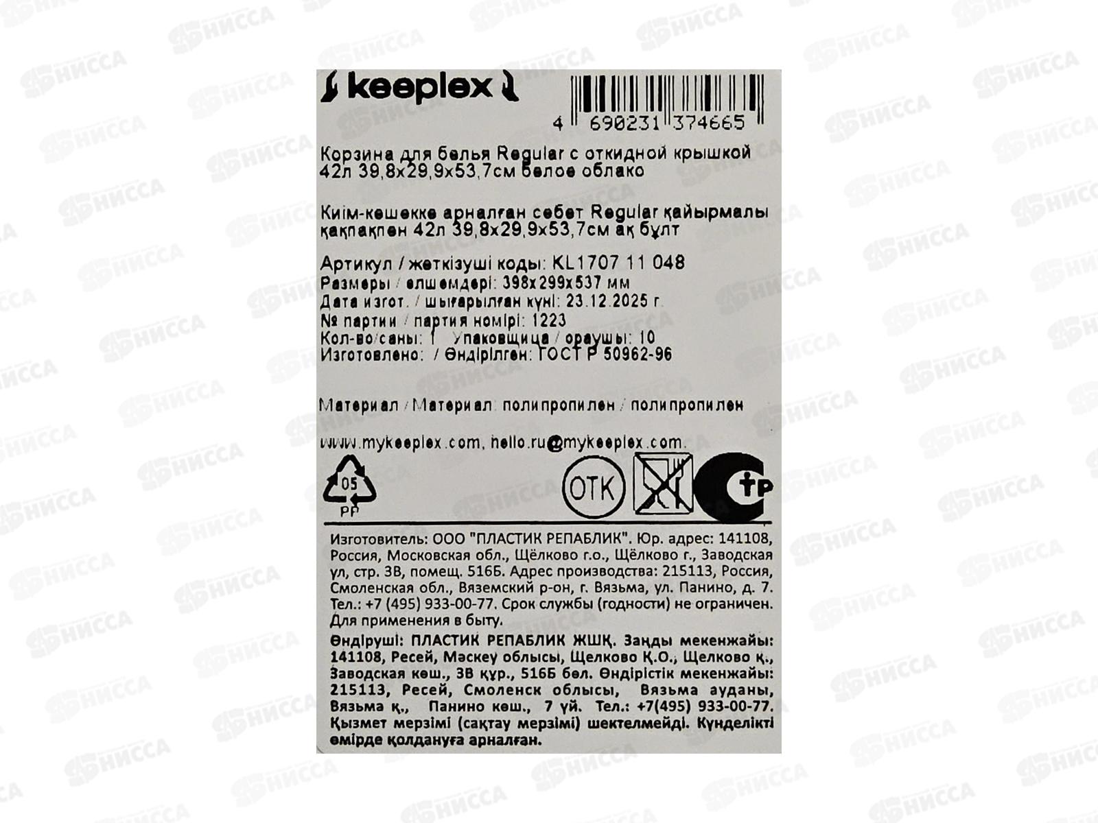 Корзина 42л д/белья Keeplex Regular белое облако, KL170711048 *8