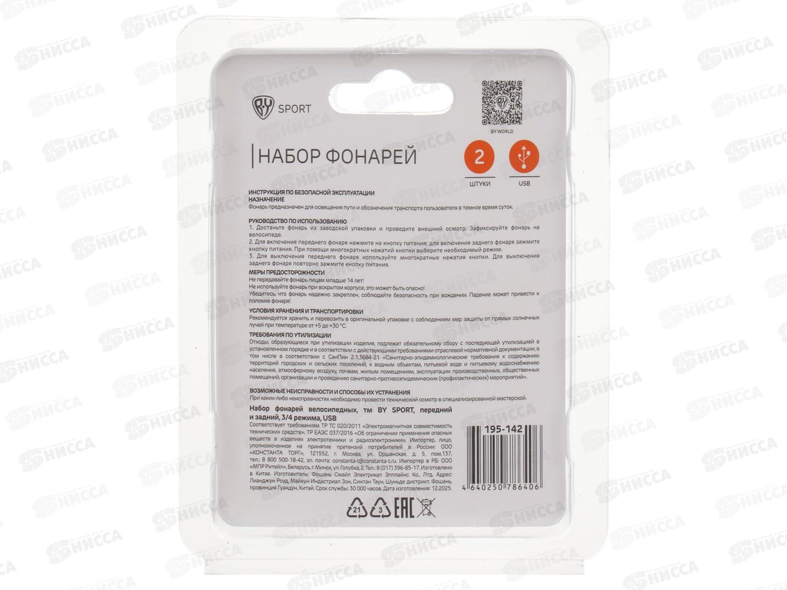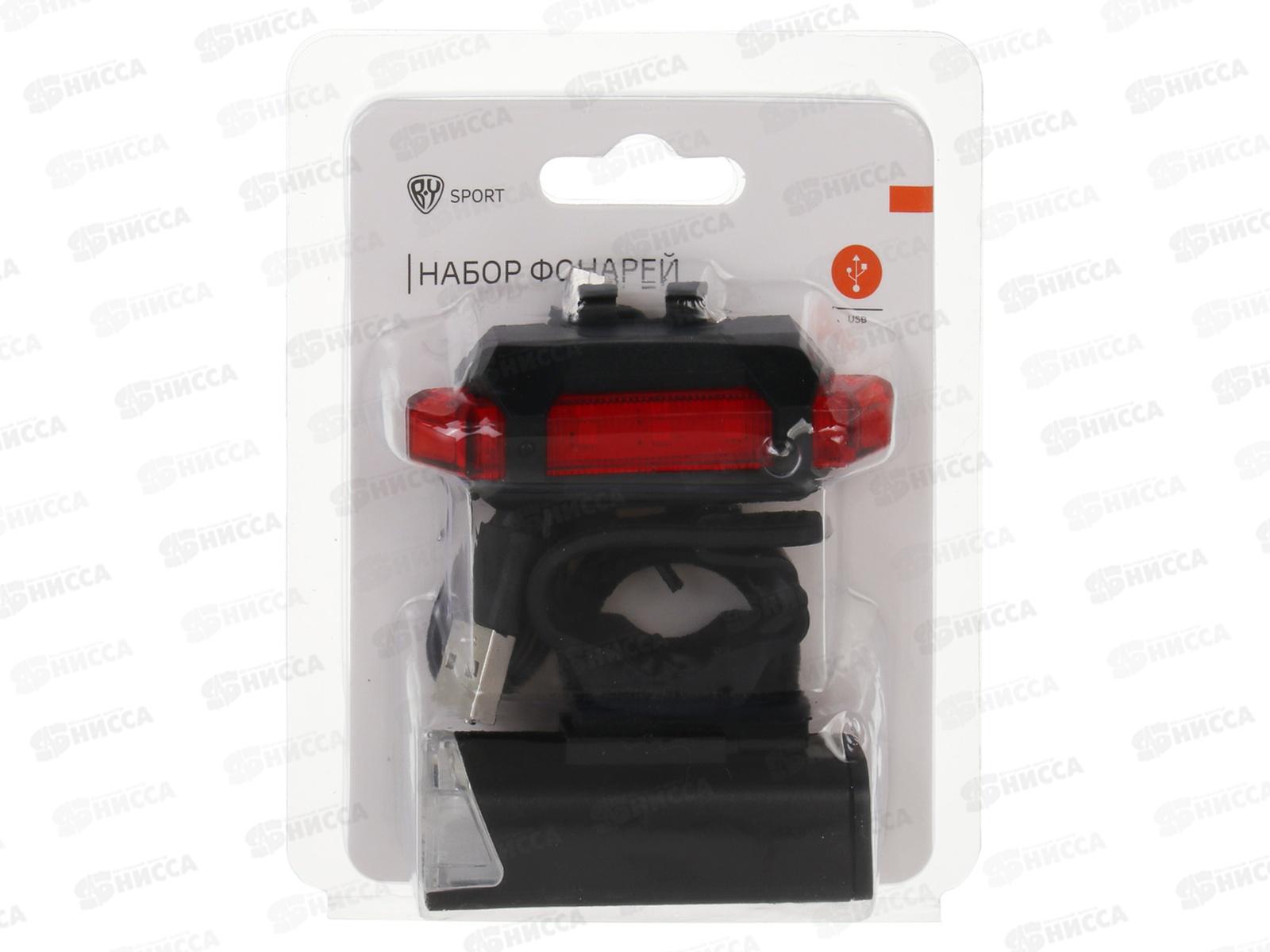 Набор фонарей велосипедных BY SPORT передний и задний, 3/4 режима, USB, 195-142 г