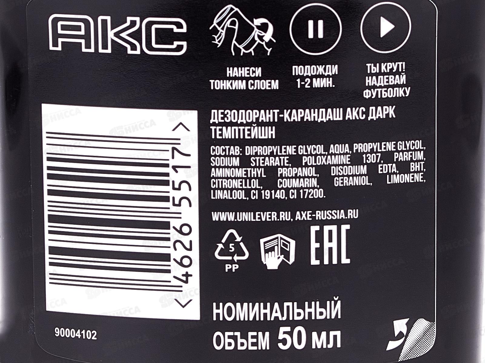 Дезодорант «Акс» Дарк Темптейшн создан специально для мужчин, которые привыкли к активному ритму жизни: непредсказуемые ситуации, экстренные встречи, спорт и тренировки. Благодаря антиперспиранту «Акс» вы забудете о проблеме излишнего потоотделения и неприятном запахе. Придаст вам уверенности в себе и чувство комфорта. Дезодорант «Акс» Дарк Темптейшн имеет манящий аромат шоколада, которые бодрят вас на протяжении всего дня. А благодаря уникальному комплексу активных компонентов антиперспирант устраняет бактерии, которые и являются основной причиной возникновения неприятного запаха.