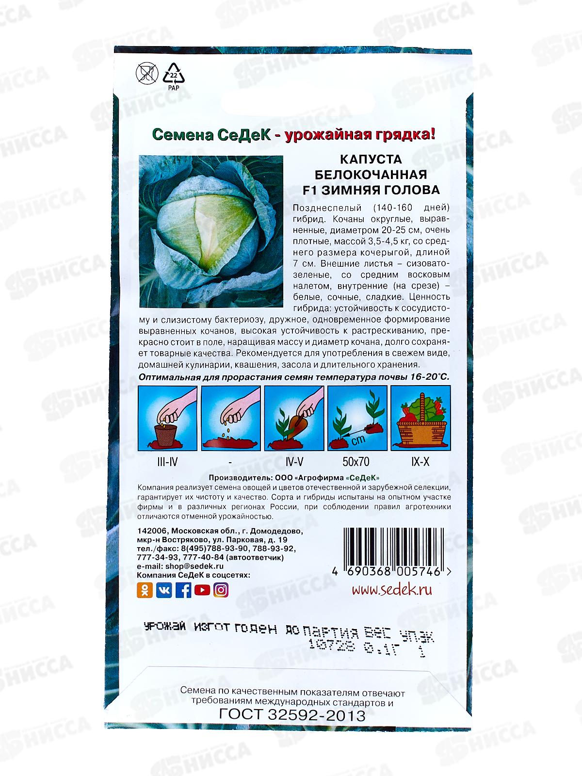 Капуста Зимняя Голова F1 белокочанная (Евро, 0,1) СеДек СРОК ДО 12.25 *10