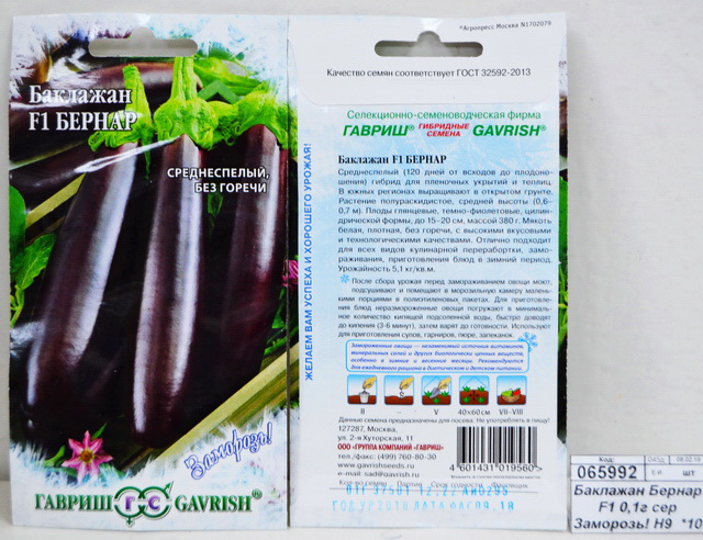 Баклажан Бернар F1 0,1г серия Заморозь! Н9 *10 ГШ +