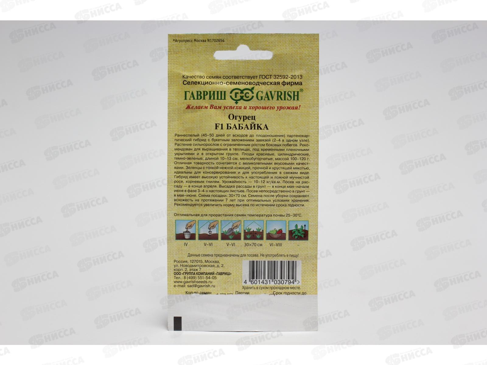 Огурец Бабайка F1 10 штук корнишон автор Н10 *10 ГШ +