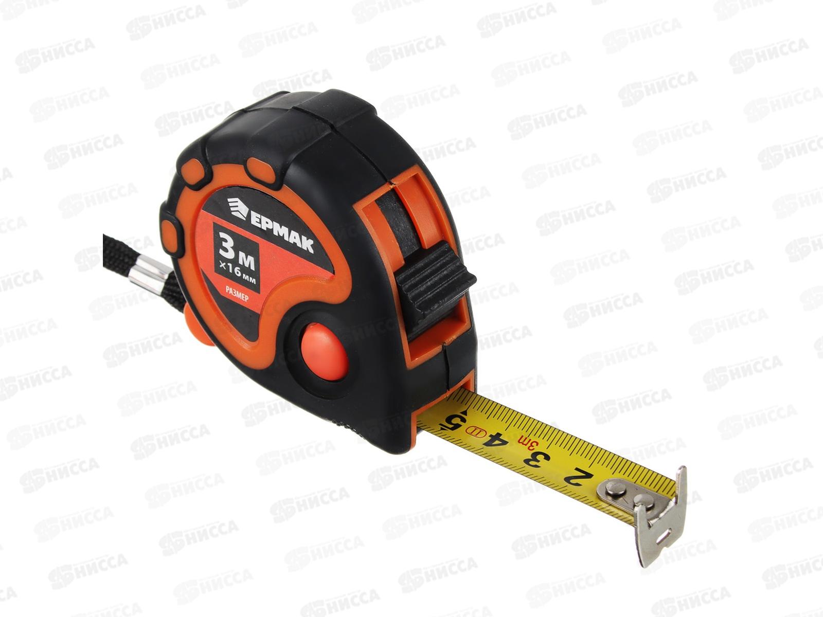 Рулетка 3м ЕРМАК 3 фиксатора, двухкомпонентный корпус 658-124 г *12