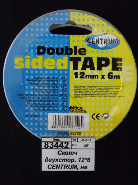 Скотч двухсторонний 12*6 CENTRUM на бумажной основе, 82752 *1/240