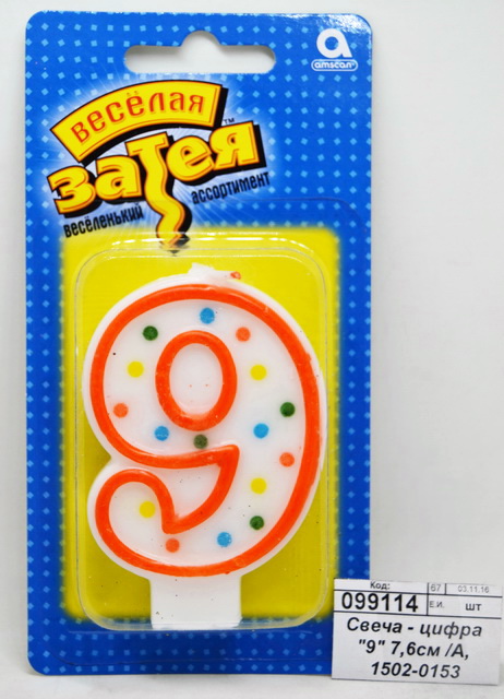 Свеча - цифра "9" 7,6см /А, 1502-0153