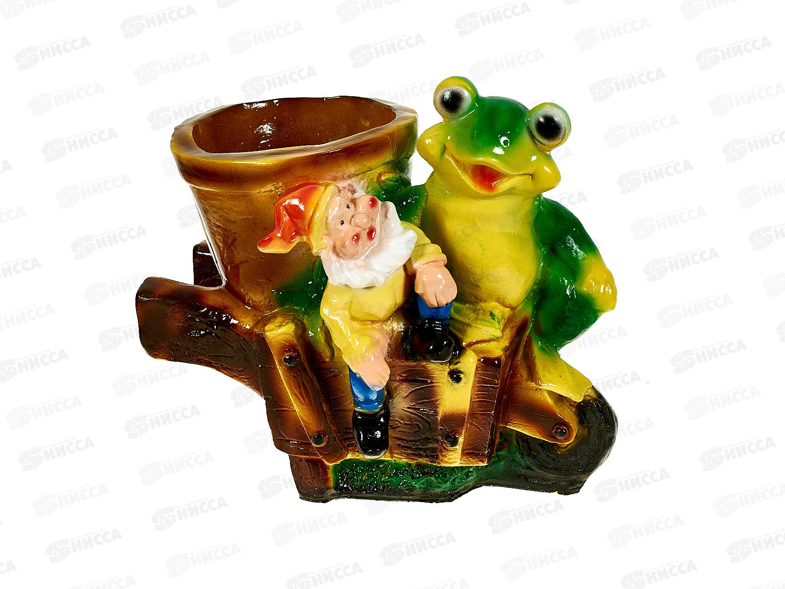 Код:563277; Кашпо "Лягушка с гномом на тачке" (300*310мм) арт.166