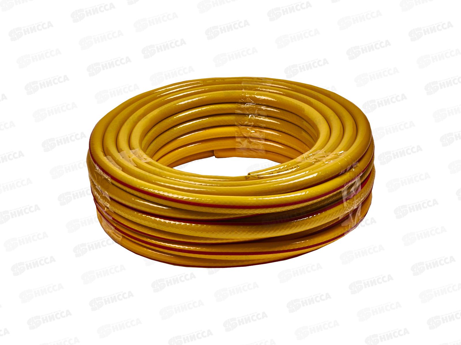 Код:568030; Шланг полив ПВХ армир. 3-х сл. 3/4" , желт.полоса 25м