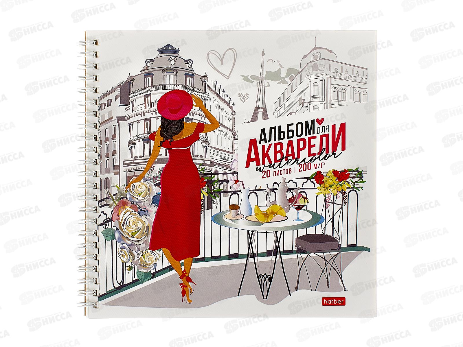 Код:569809; Альбом д/акварели 20л А4 Hatber Романтика Парижа, клей, 31130 *20
