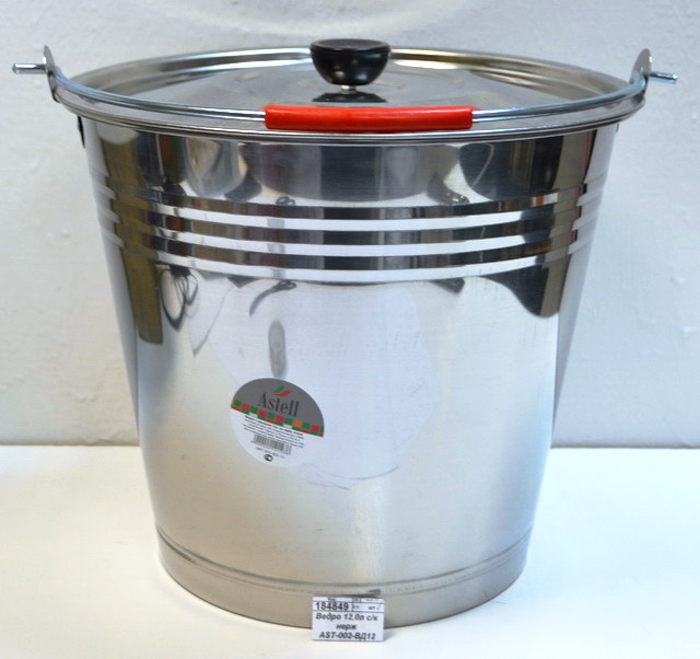 Код:184849; Ведро 12,0л с крышкой нержавеющее AST-002-ВД12