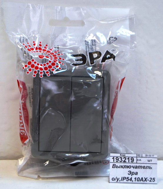 Код:193219; Выключатель Эра открытой установки IP54,10АХ-250В двойной, серый, 11-1404-03 *1