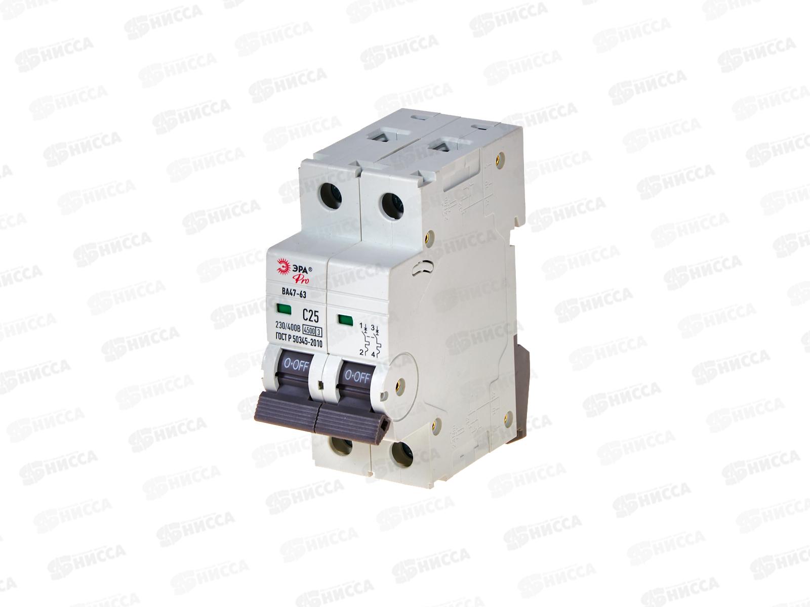 Код:555736; Автоматический выключатель ВА47-63 2P 25А 4,5кА C ЭРА Pro, VA63-2P25C4.5 *6/60