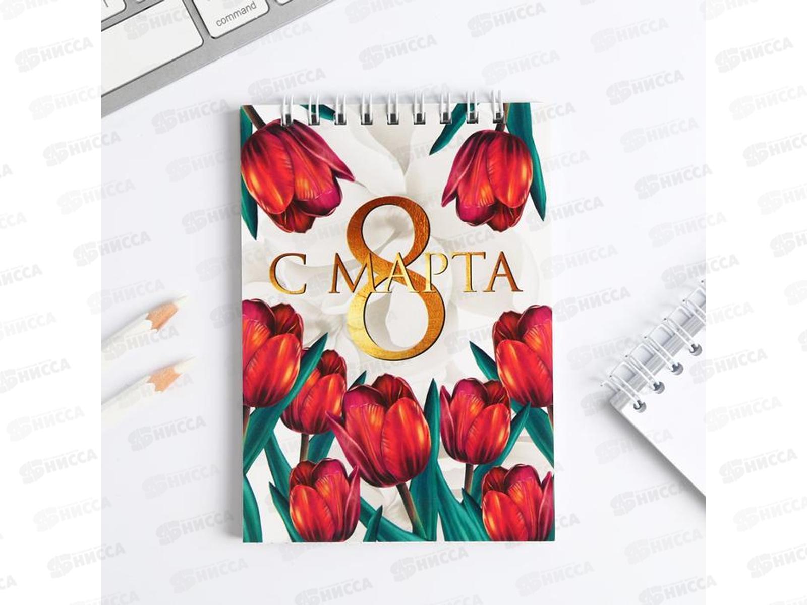 Код:435934; Блокнот 40л "С 8 марта тюльпаны" А6, на гребне, 5284799