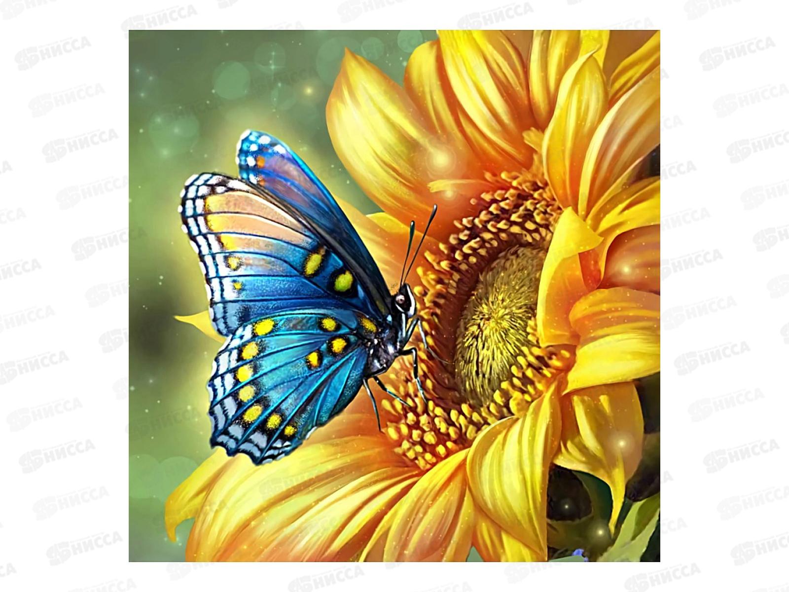 Код:598763; Алмаз. мозаика (класс.) 20х20см Голубая бабочка, НД-0898 на картоне