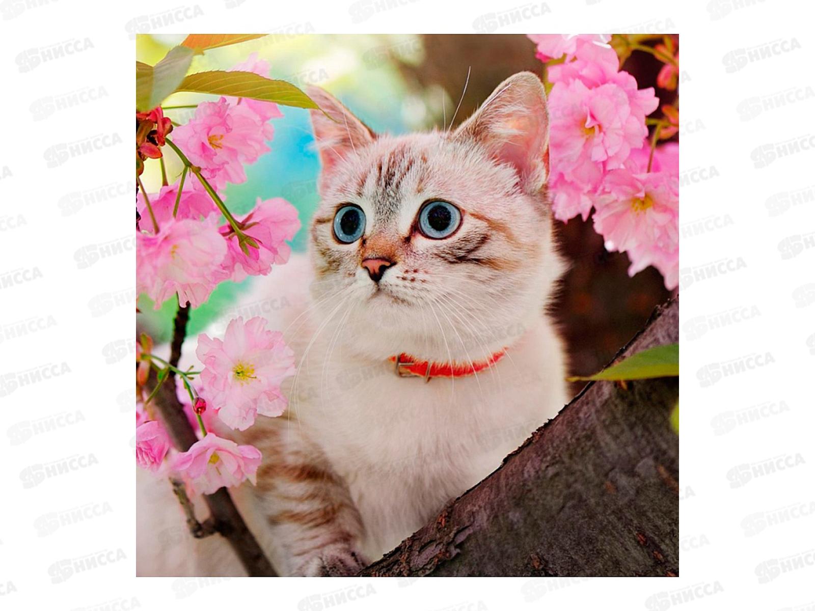 Код:598764; Алмаз. мозаика (класс.) 20х20см Кошка на дереве, НД-0890 на картоне