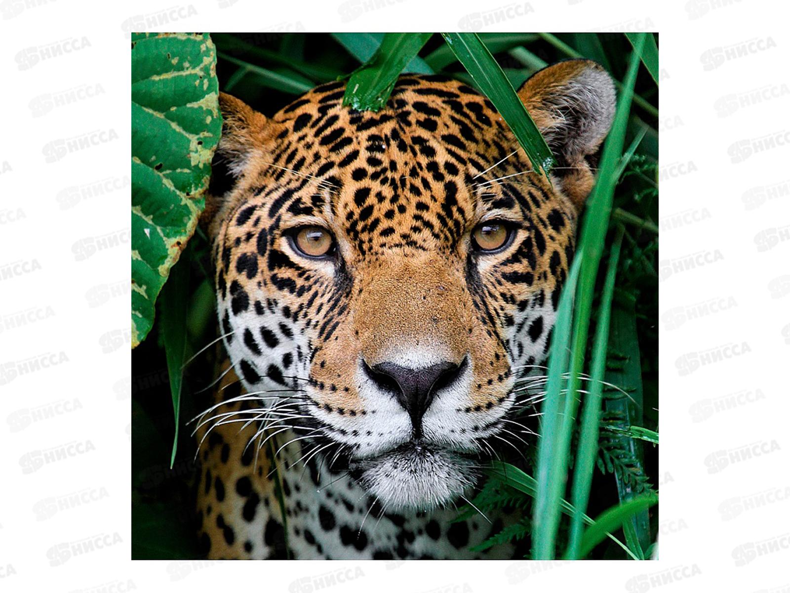 Код:598765; Алмаз. мозаика (блест.) 20х20см Леопард в траве, НД-0900 на картоне