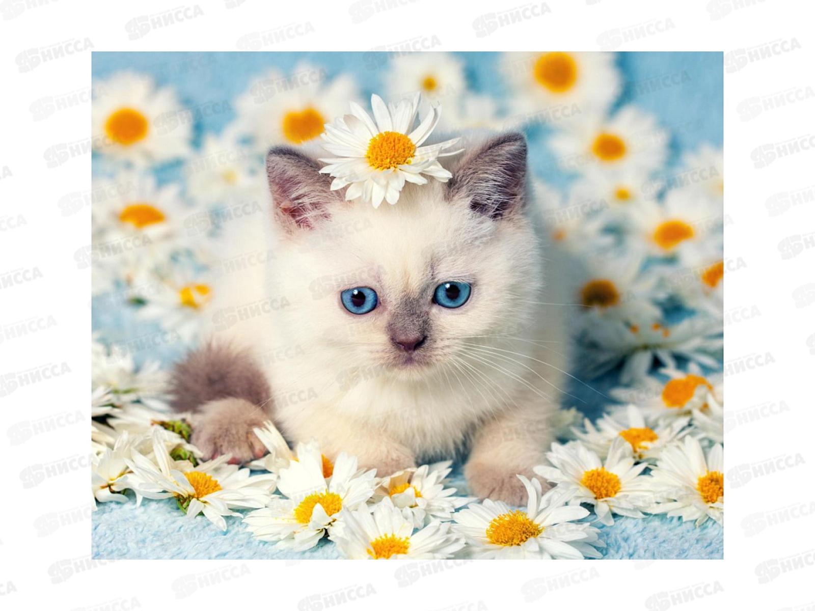Код:598769; Алмаз. мозаика (класс.) 20х30см Котенок в ромашках, НД-0959 на картоне