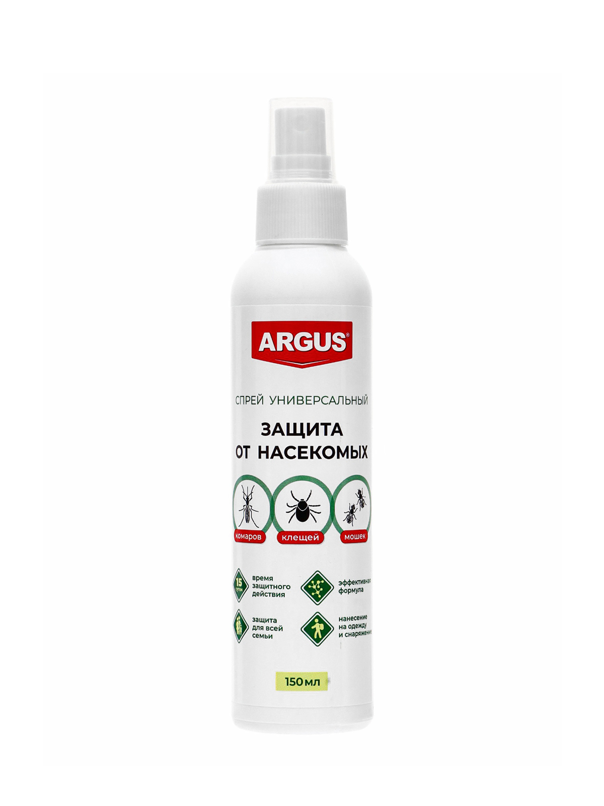 Универсальный спрей Argus предназначен для защиты людей от кровососущих насекомых: комаров, клещей, мокрецов, москитов, мошек. Применяется для обработ...