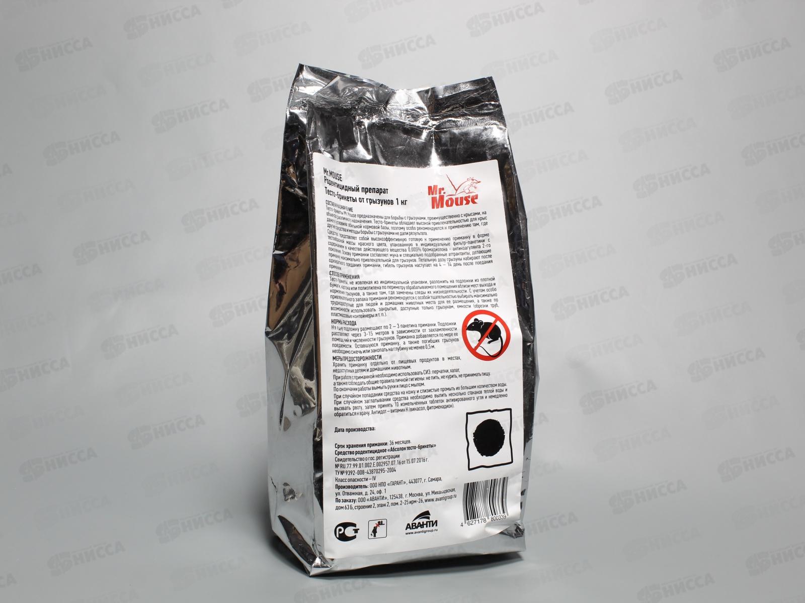 Код:367764; Mr. Mouse тесто от грызунов 1кг в пакете М-339 *6