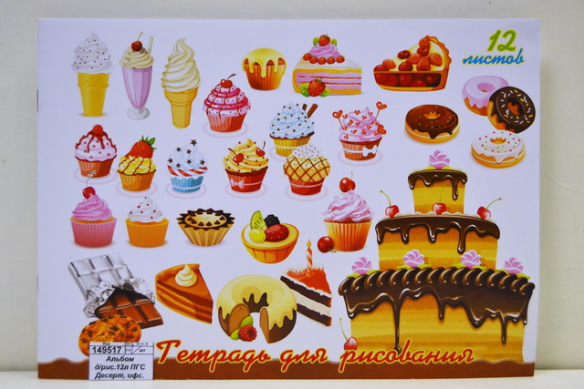 Код:149517; Альбом для рисования 12листов ПГС Десерт, офсетный *40