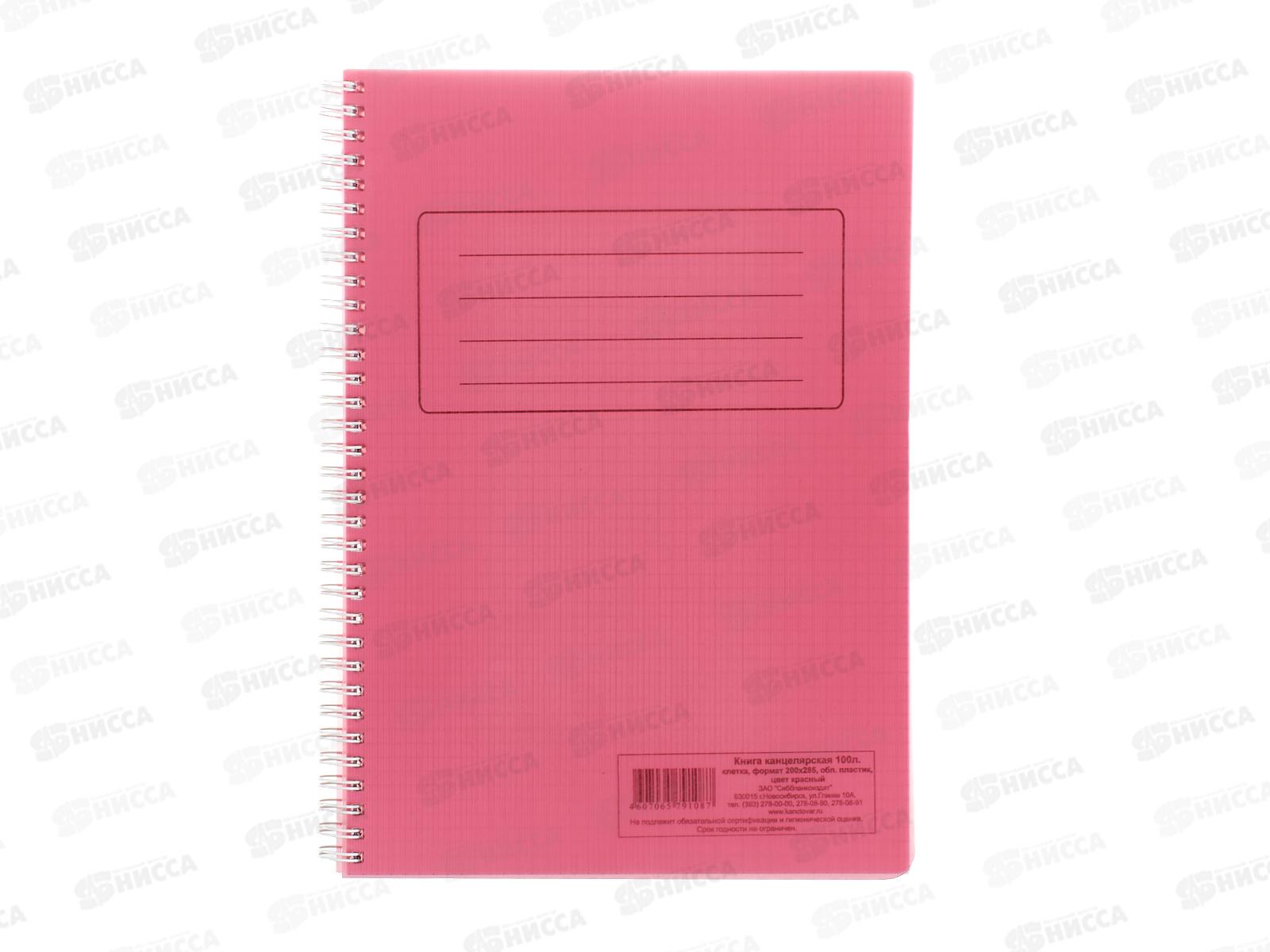 Код:052458; Книга канцелярская 100л клетка СБ красная пластиковая обложка, на гребне *5