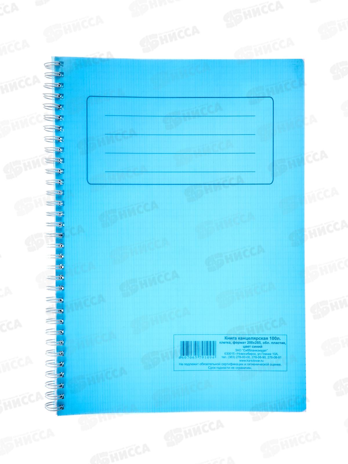 Код:053436; Книга канцелярская 100л клетка СБ синяя пластиковая, на гребне *5