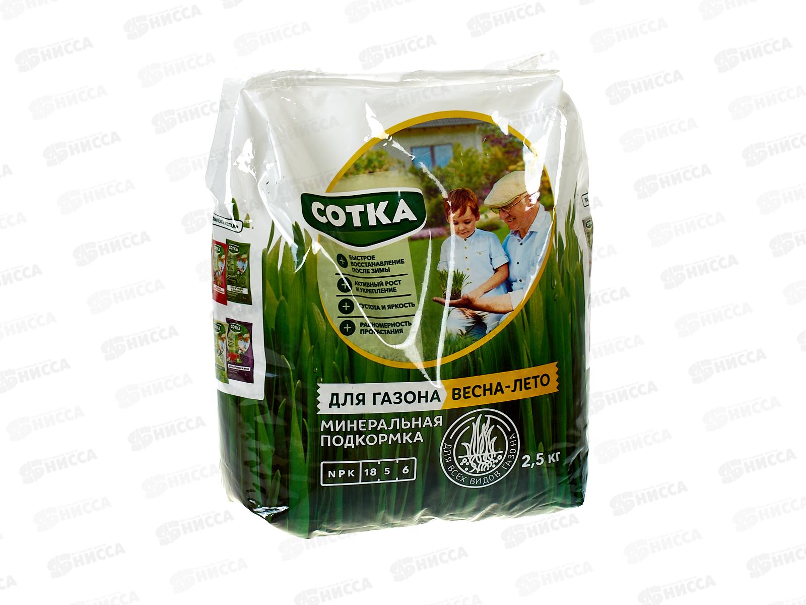 Код:574258; Сотка Тукосмесь Для газона Весна-Лето 2,5кг пакет *6
