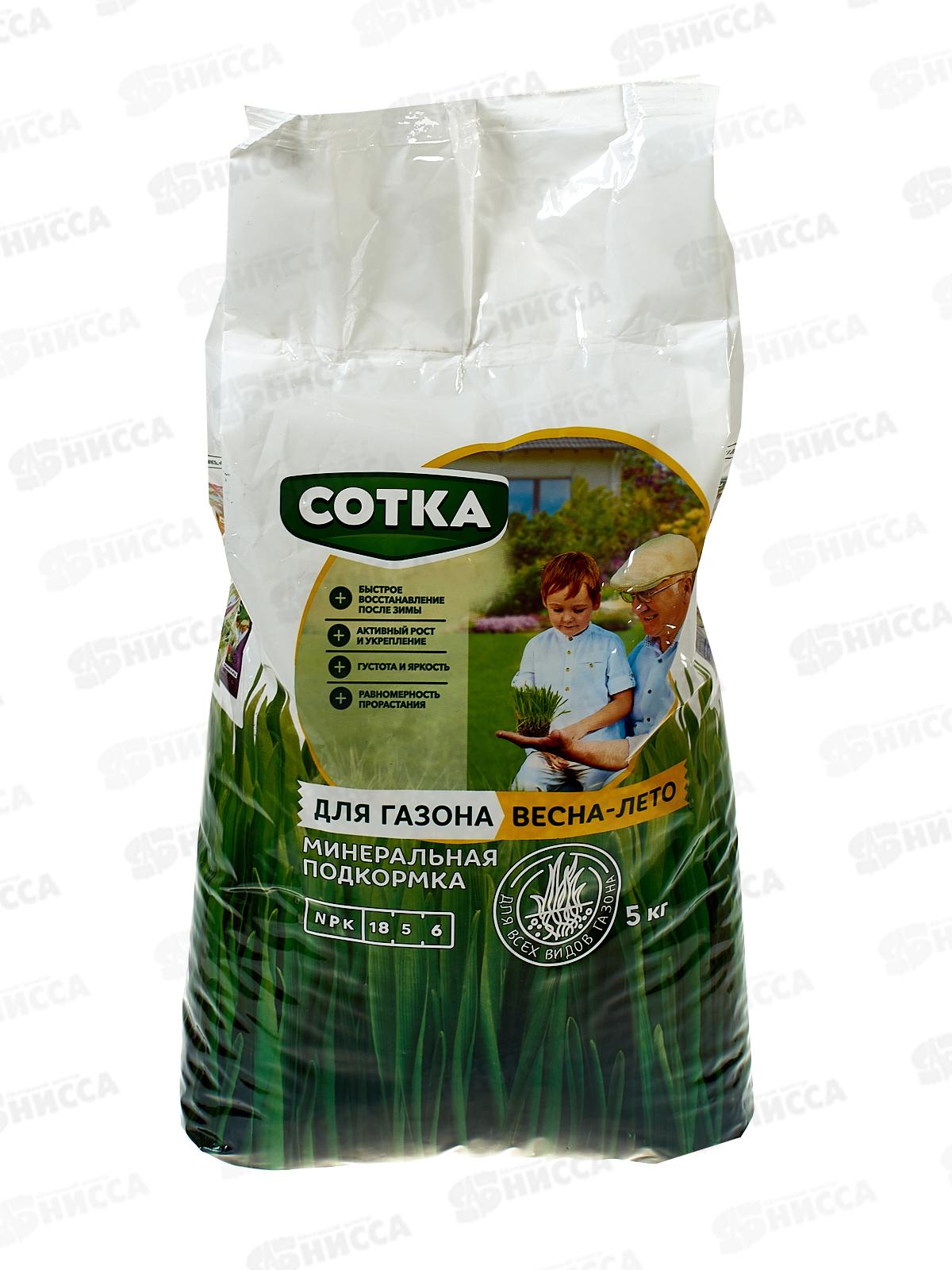 Код:574259; Сотка Тукосмесь Для газона Весна-Лето 5кг пакет *3