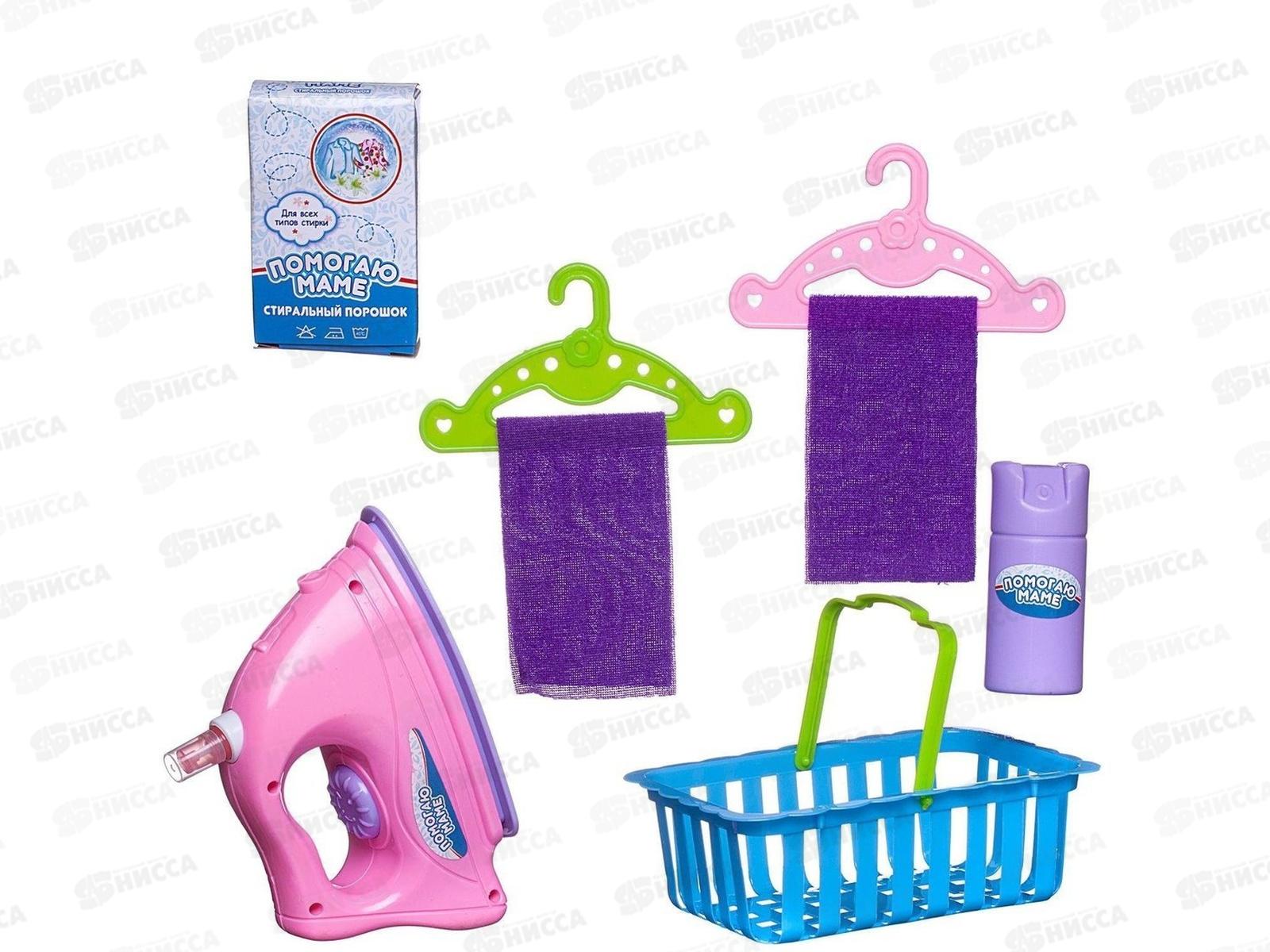 Комплектация (7 предметов): утюг, корзина, стиральный порошок в коробке, вешалка 2 шт, бутылочка, ткань. Функции: световые эффекты, звуковые эффекты.Х...