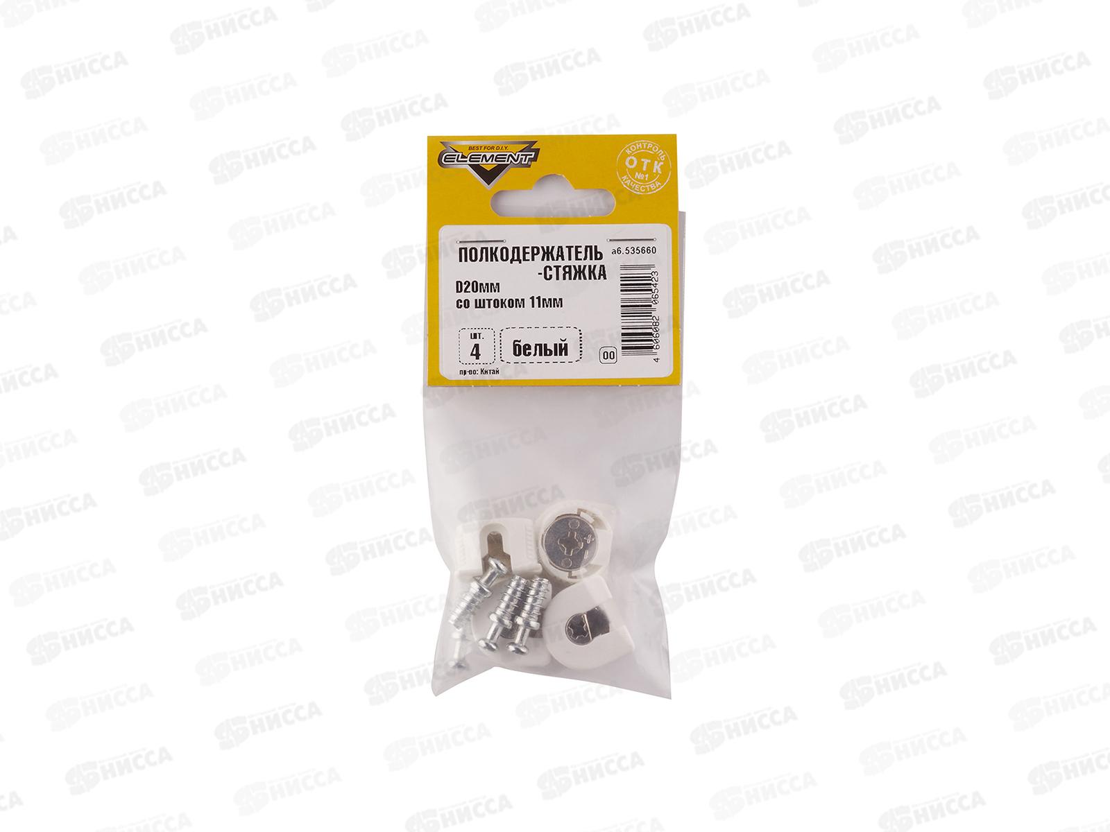 Код:442559; Полкодержатель-стяжка D20 мм +шток 11 мм (белый 4шт)