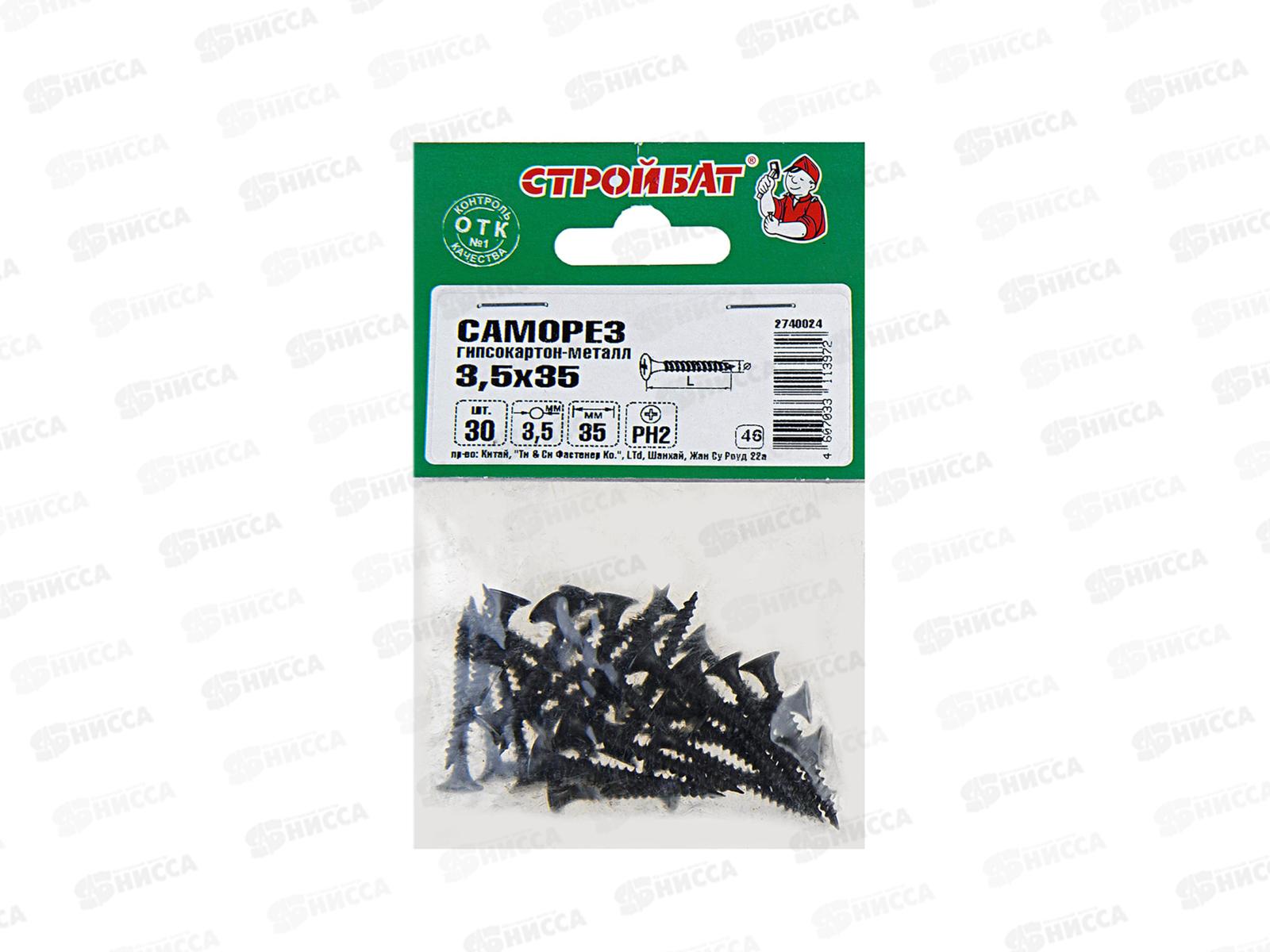 Код:442282; Саморез СГМ гипсокартон-металл 3,5x35 (фосфатированые 30шт) *50