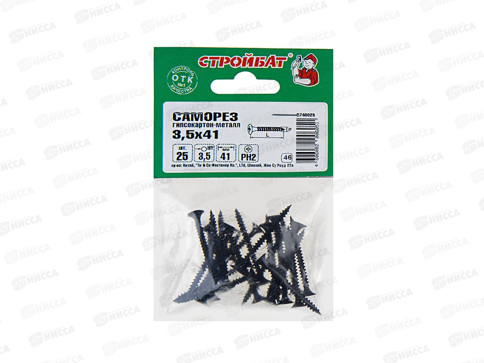 Код:442283; Саморез СГМ гипсокартон-металл 3,5x41 (фосфатированые 25шт) *50