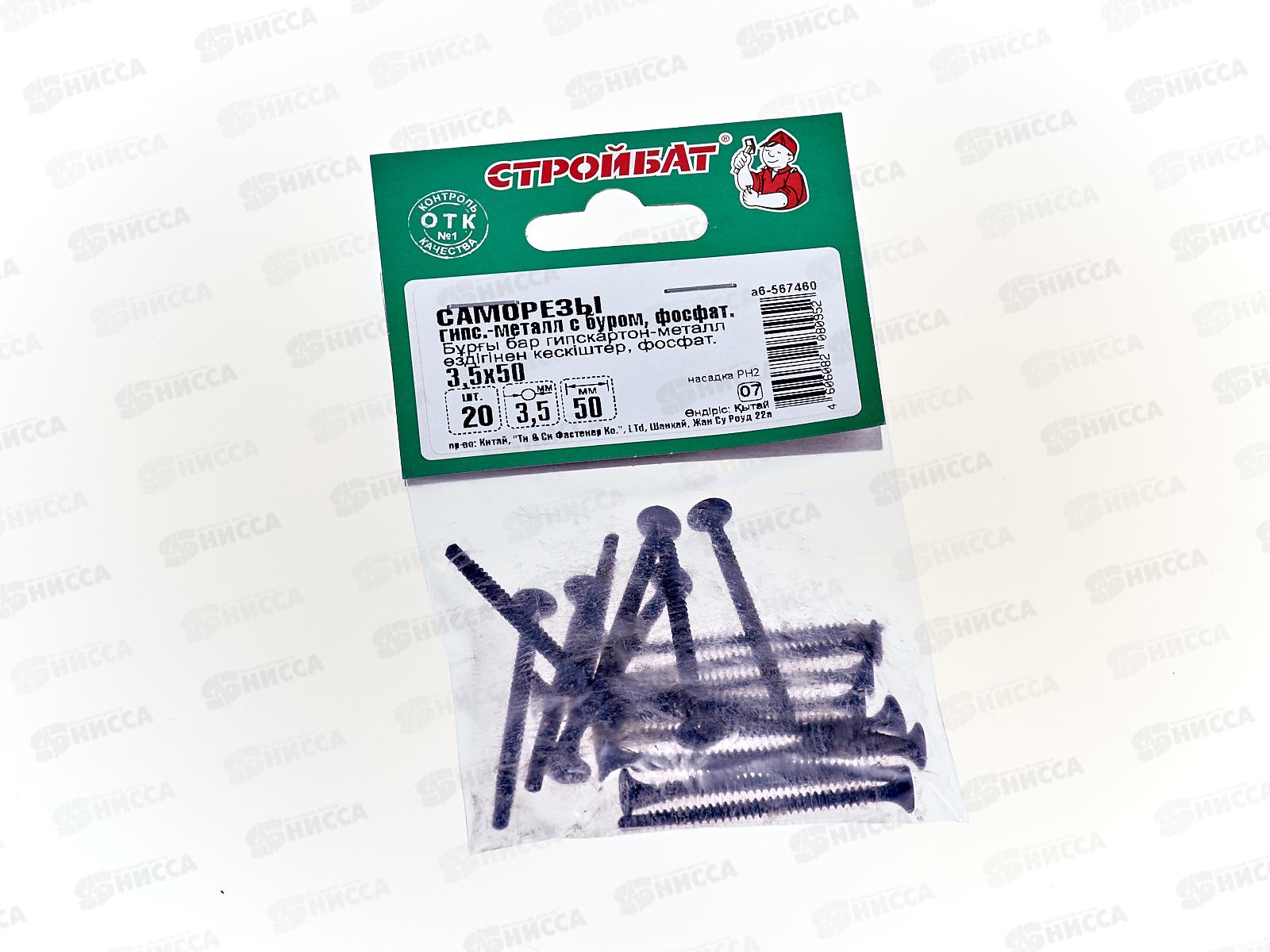 Код:442289; Саморез СГМ гипсокартон-металл с буром 3,5x50 (фосфатированые 20шт)