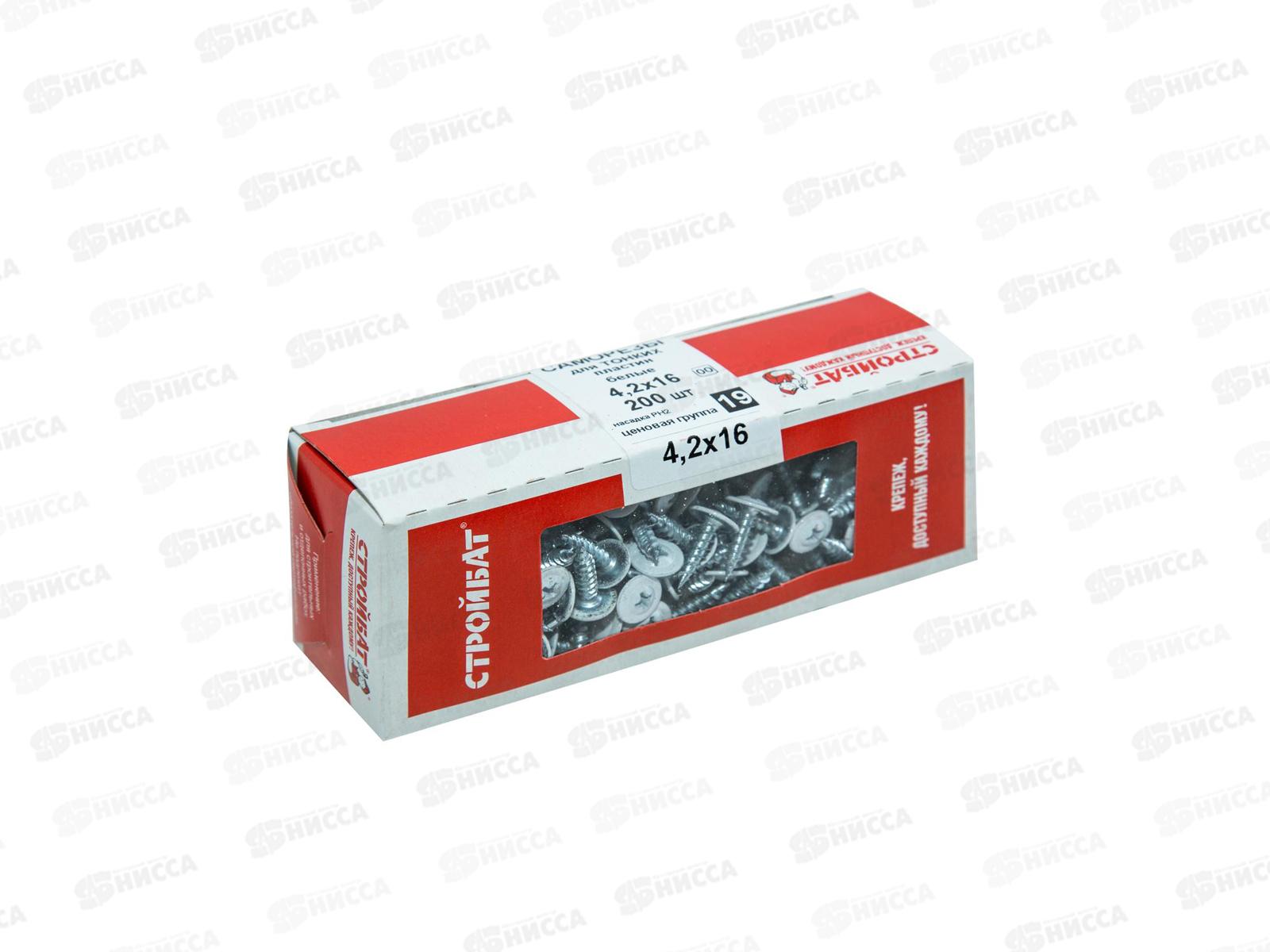Код:442295; Саморез СММ для тонких пластин с буром 4,2x16 (белый цинк 200шт) *20