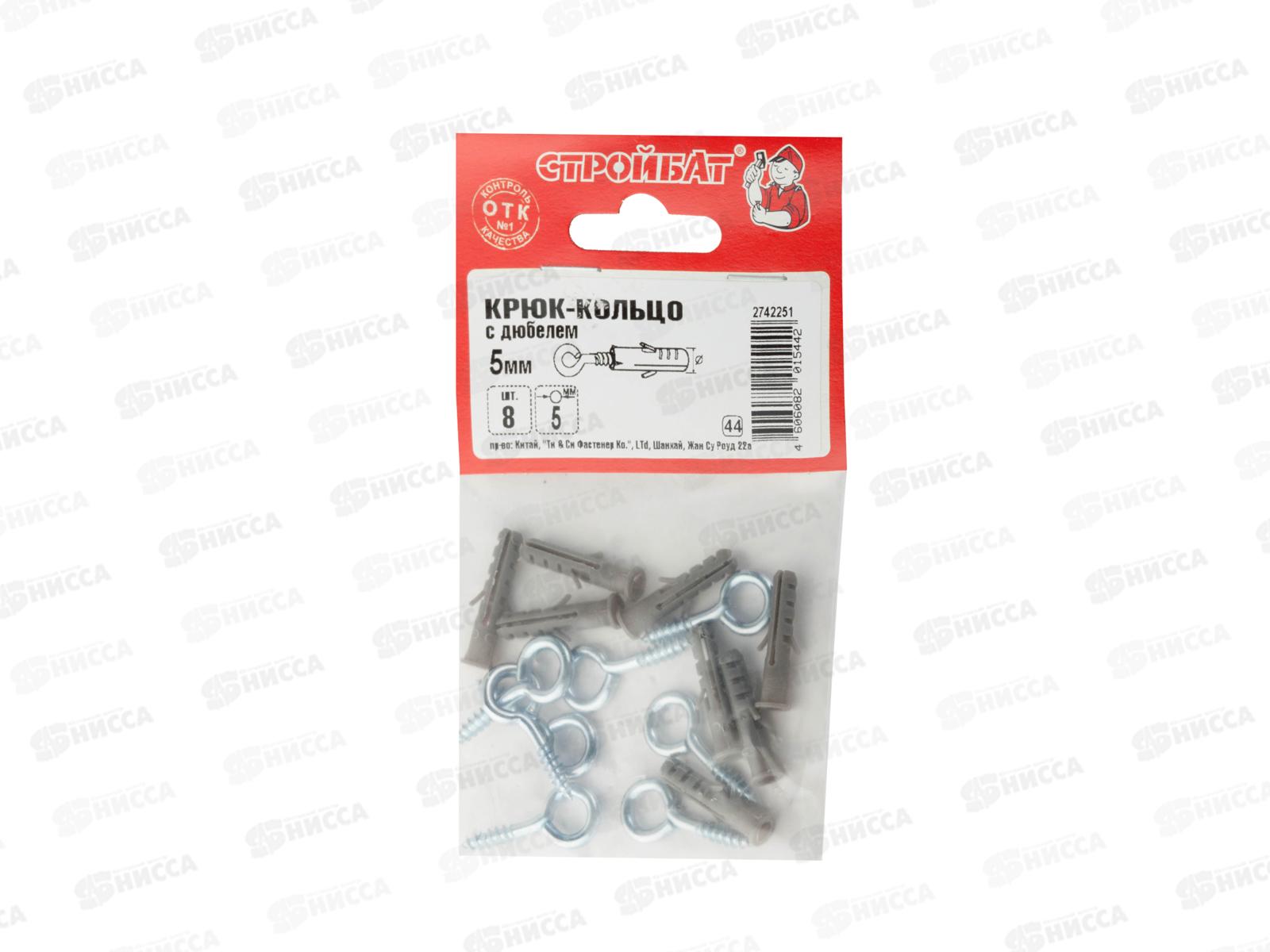 Код:442389; Шуруп-кольцо с дюбелем 5 мм (8шт) *40