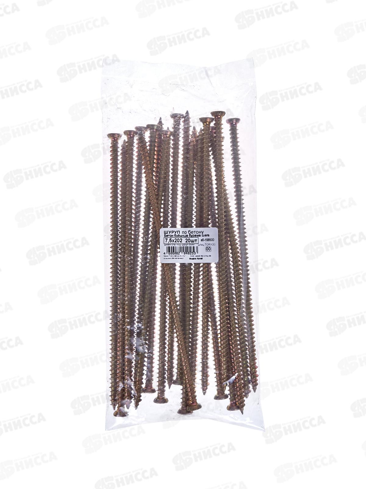 Код:503425; Шуруп по бетону 7,5x202 (желтый цинк 20шт)