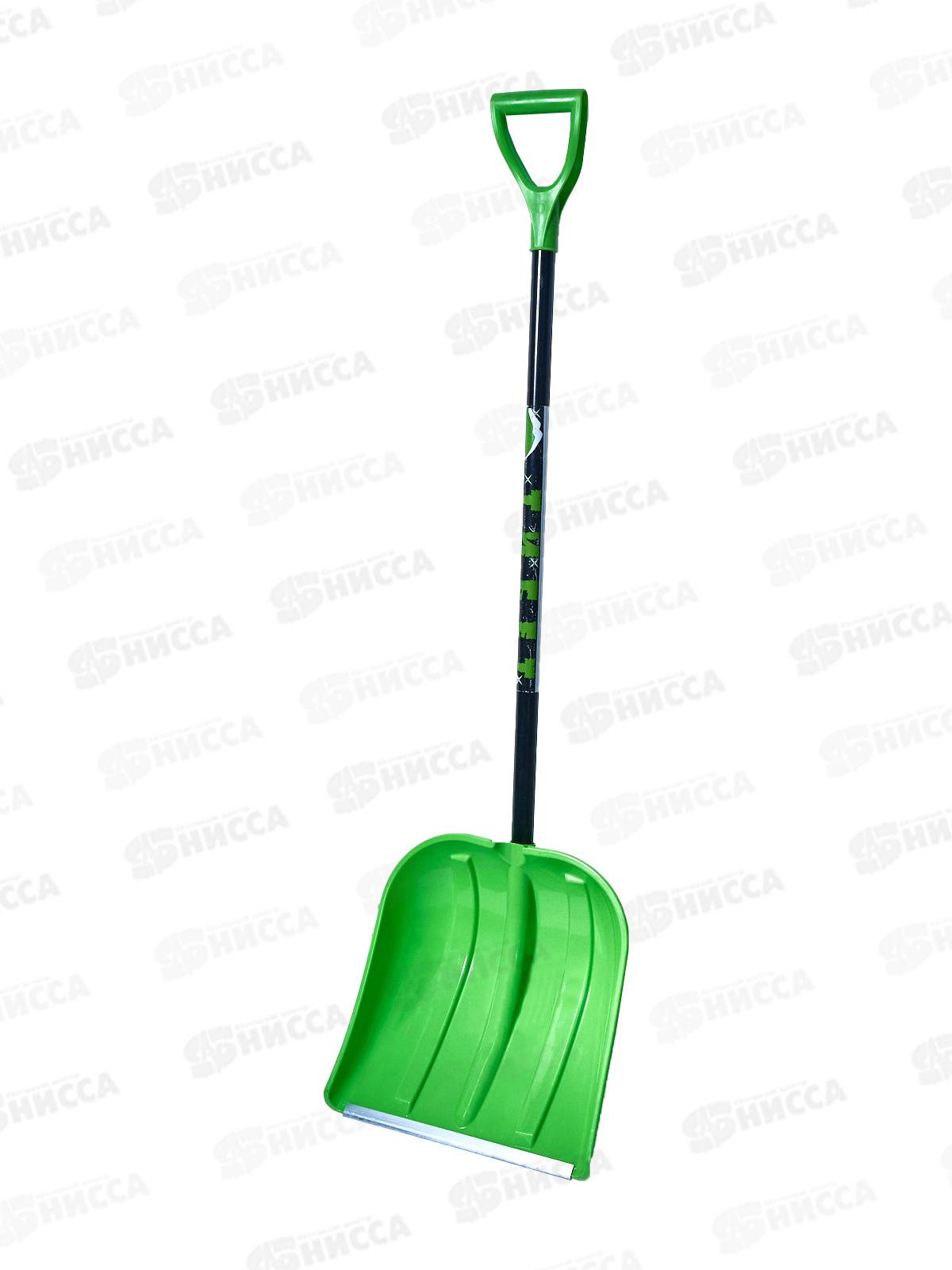 Код:506271; Лопата снеговая ТИБЕТ 410*415мм, зеленая с алюминиевой планкой без черенка, с этикеткой *10