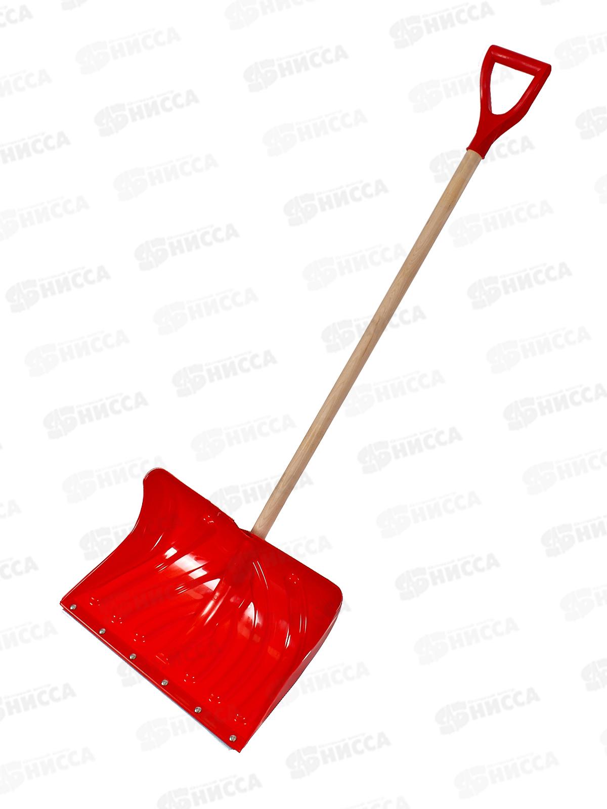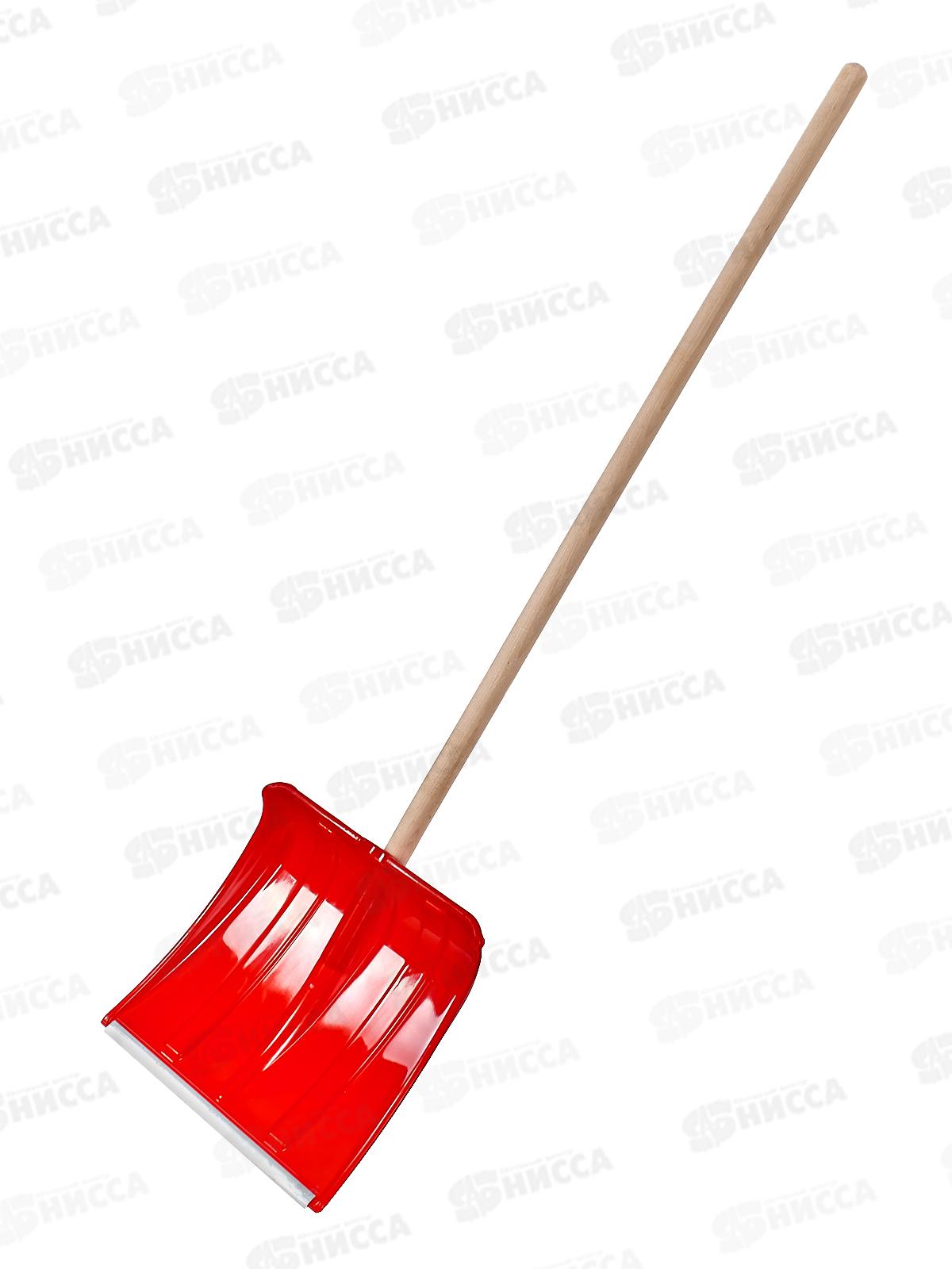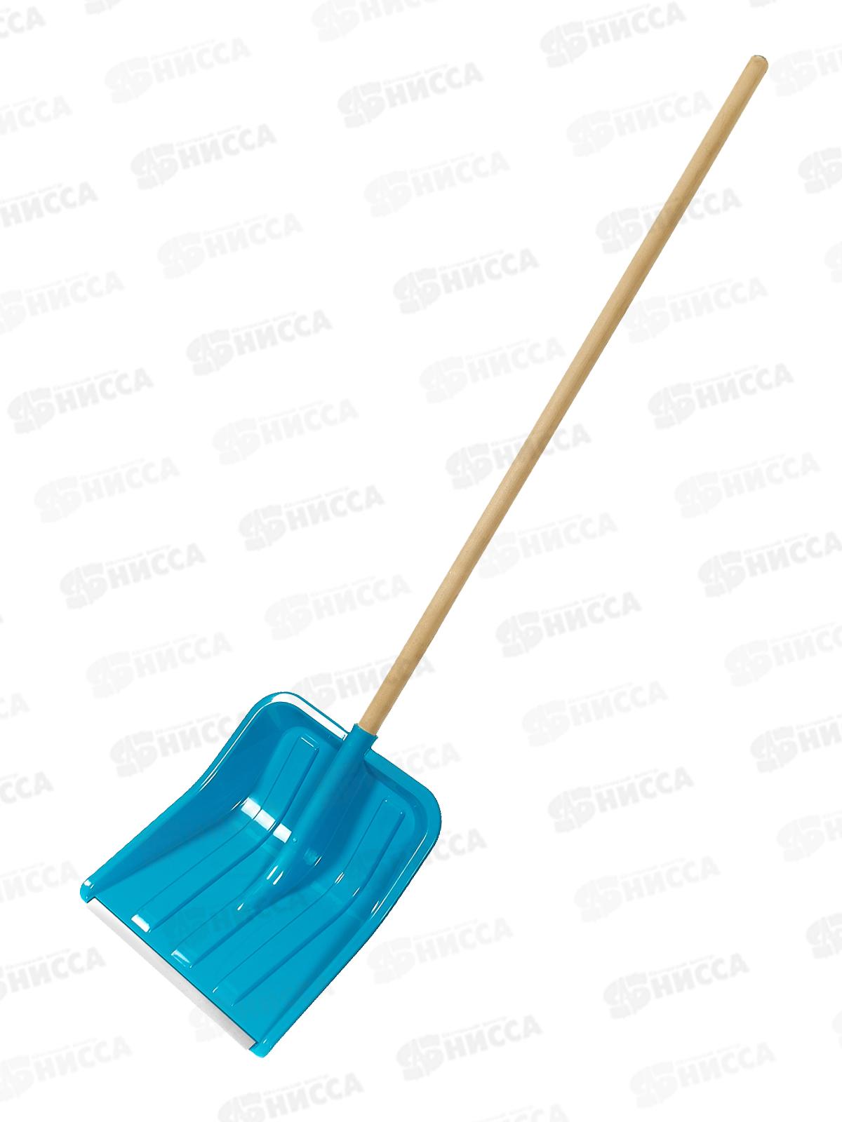 Код:547334; Лопата снеговая СНЕЖНИК пластмассовая 1425*380*370 с алюминиевой планкой, березовый черенок высшего сорта *5/120