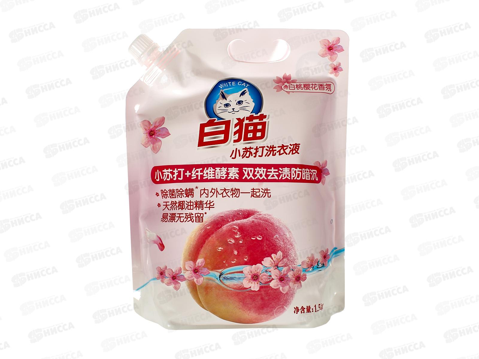 Код:527960; Whitecat Гель для стирки 1,5л на основе соды Персик и вишня дой-пак *6