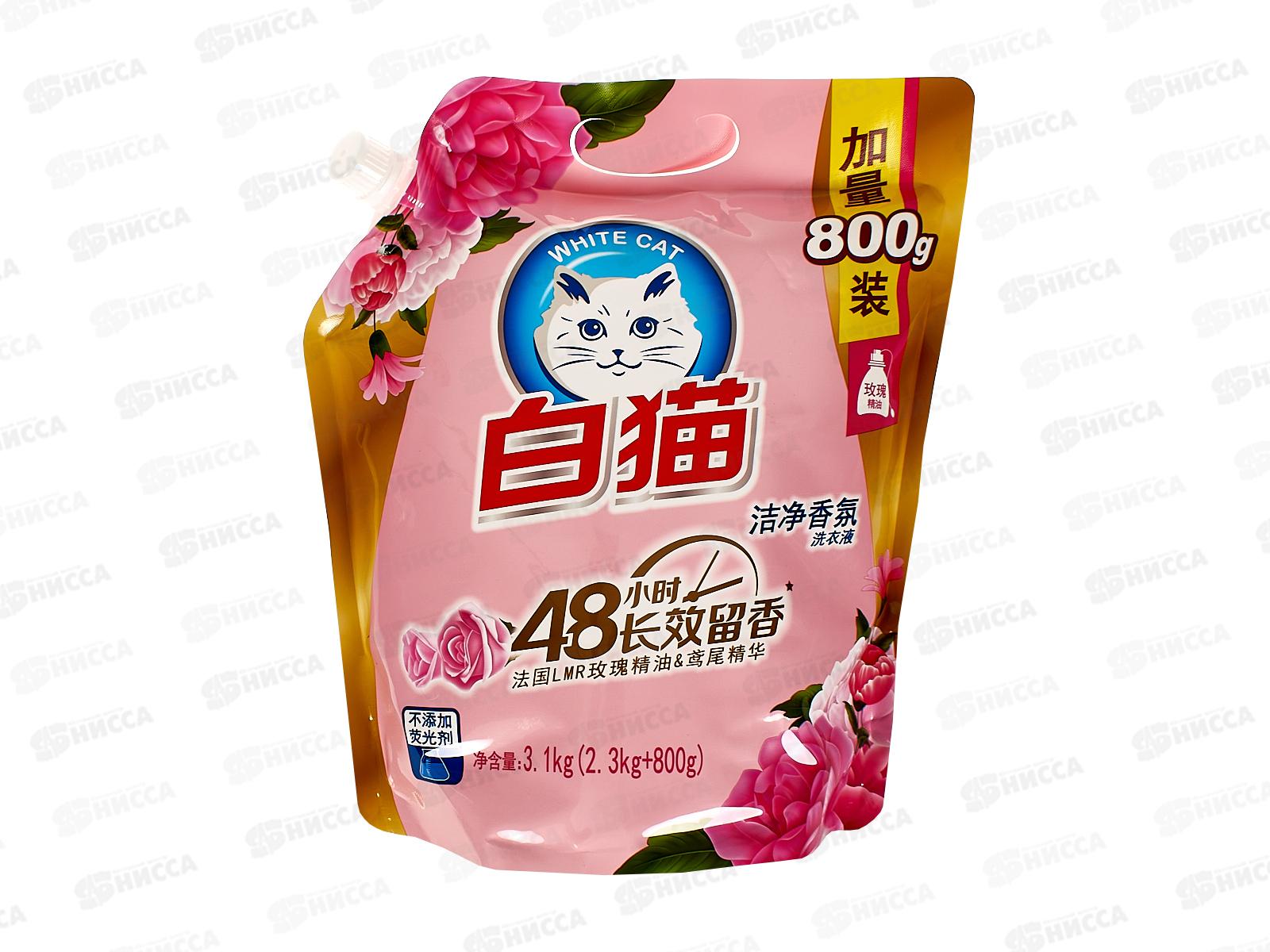 Код:537354; Whitecat Гель для стирки 2,3кг+800г Роза дой-пак *4