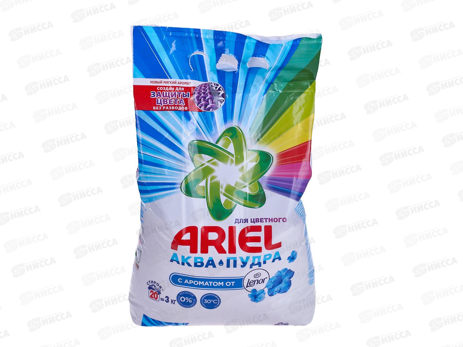 АРИЭЛЬ автомат 3кг Аква-пудра с ароматом Lenor для цветного *6