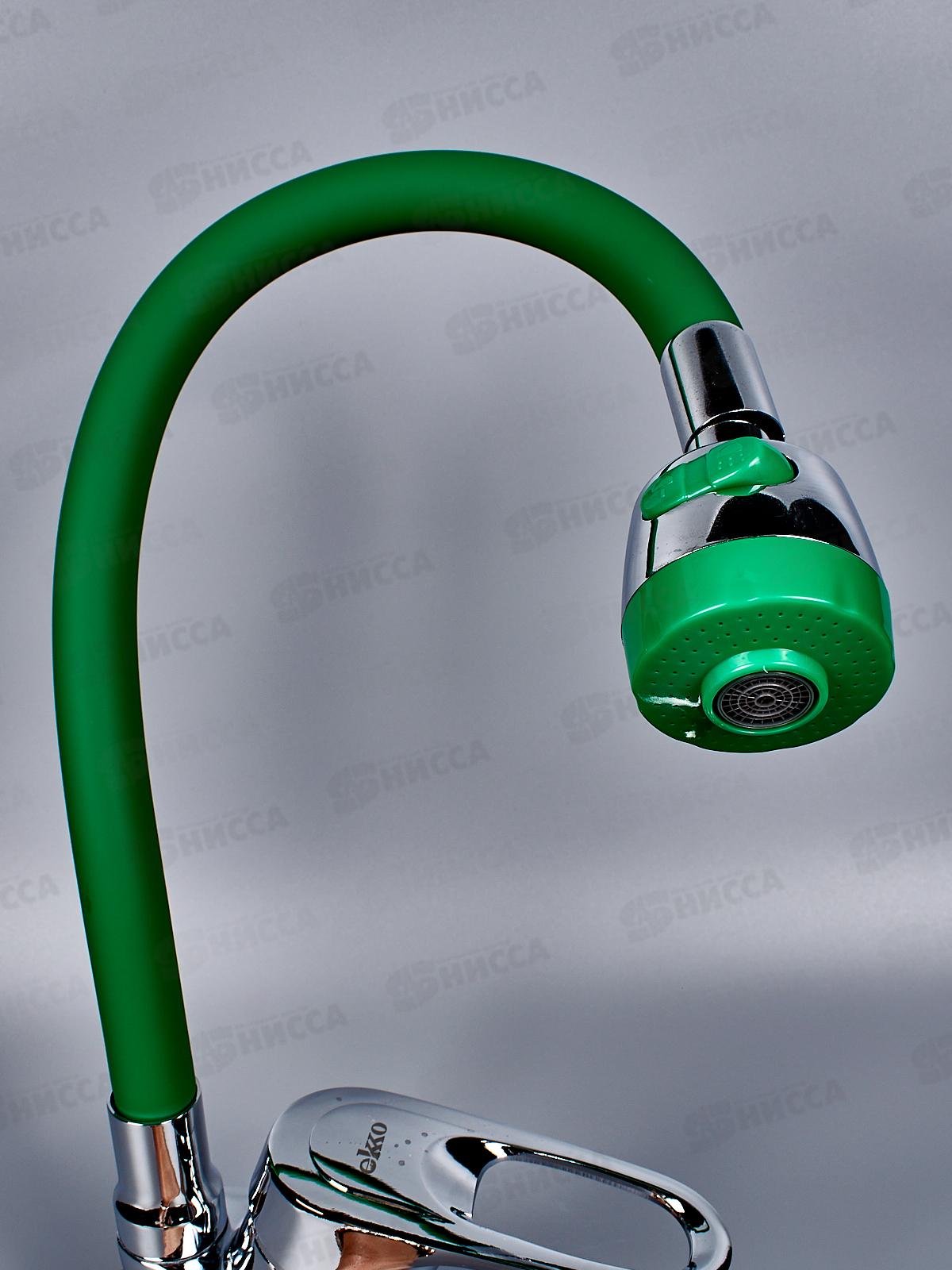 Смеситель для кухни гибкий излив 2 режима с гайкой, зеленый, E4105+E66