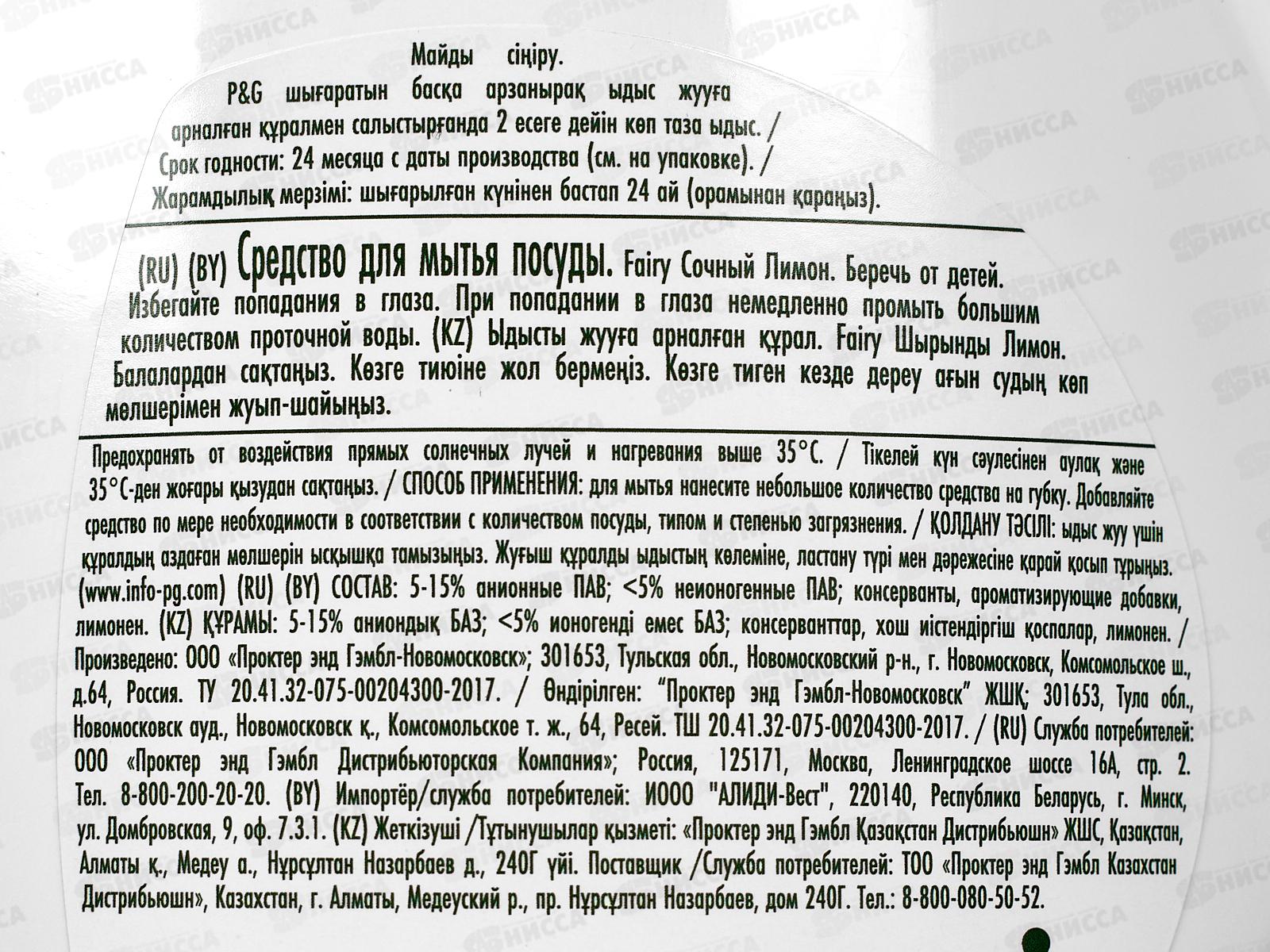 ФЭЙРИ 900мл жидкость для посуды Лимон *12