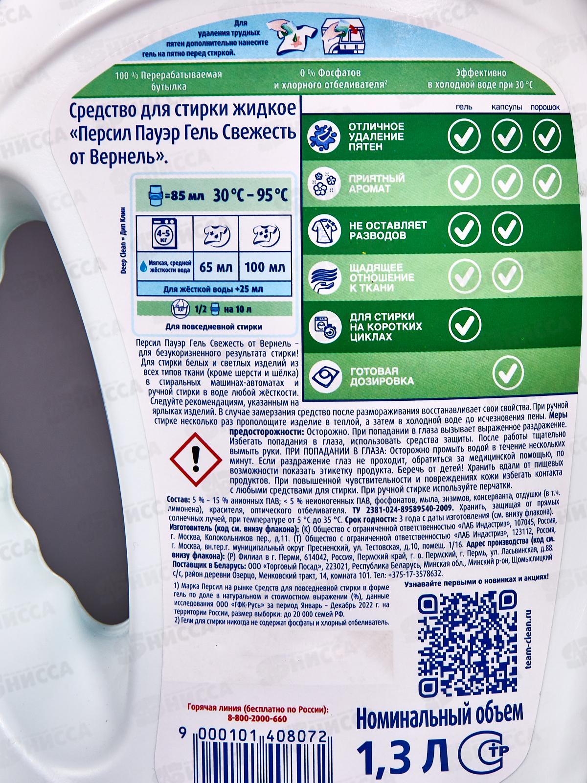 ПЕРСИЛ гель для стирки 1,3л Свежесть Вернеля *4