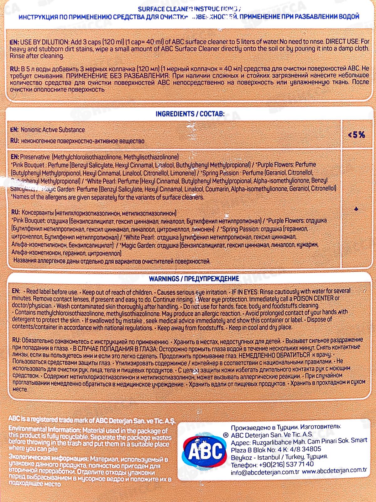ABC Для пола и поверхностей Розовый букет 900мл *14