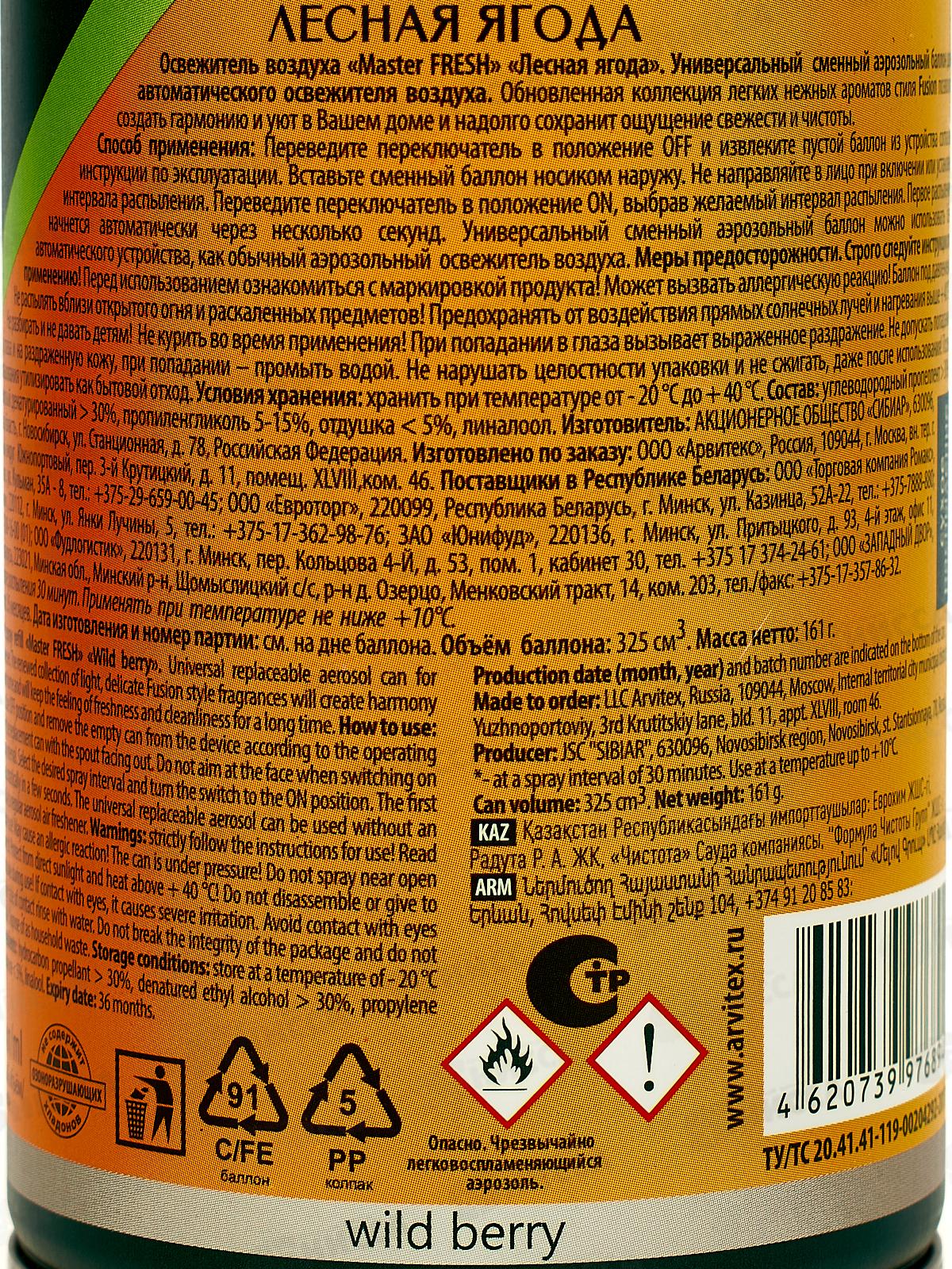 Master FRESH освежитель воздуха сменный баллон Лесная ягода 250мл *12 С0006612