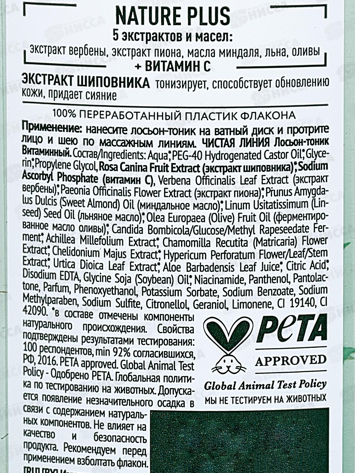 Концерн Калина Чистая Линия Лосьон-тоник Витаминный 100мл *5/20