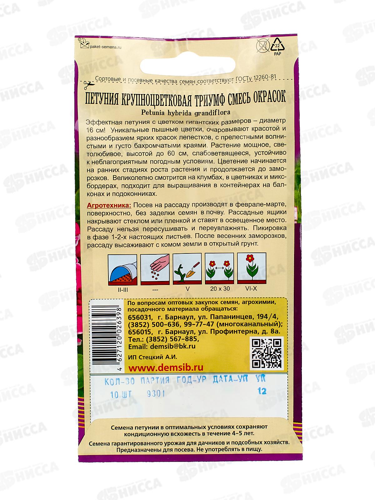 Петуния Триумф смесь окрасок ДемСиб *10