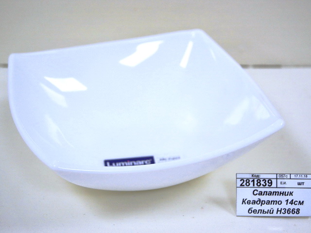 Салатник Luminarc "Quadrato", белый, 14 см. Изделие выдерживает значительный перепад температур – около 135 градусов (салатник из холодильника можно сразу поместить в СВЧ – печь, а нагретую посуду можно мыть прохладной водой). Форма салатника квадратная, с углубленным дном и слегка приподнятыми в уголках краями. Идеально подходит для сервировки блюд японской кухни. Строгий геометрический дизайн и классическая цветовая гамма вполне отвечают требованиям поклонников восточной кулинарии.